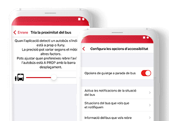 - Funcionalitats útils per a invidents com la funcionalitat d’ús d’alertes en parada. Activa-les des de la configuració de l’aplicació.