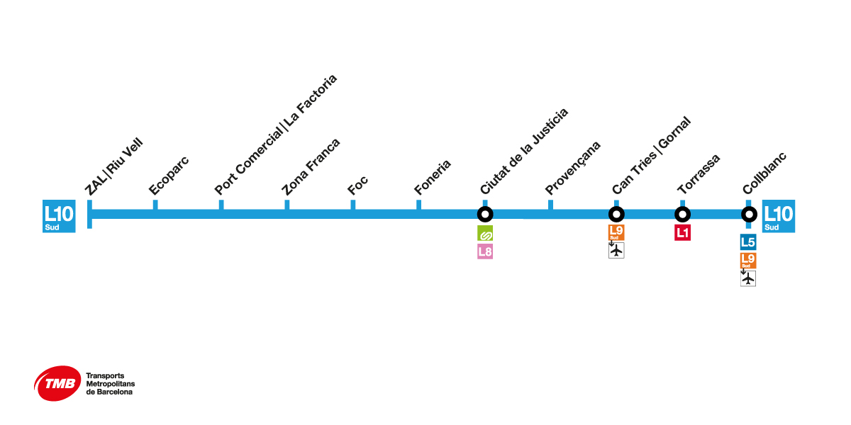 La línia 10 Sud, el tram sud de la línia blau clar del metro de Barcelona, connecta els municipis de Barcelona i l’Hospitalet de Llobregat, passant pels barris de la Marina, Santa Eulàlia, la Torrassa i Collblanc.