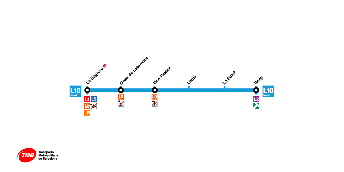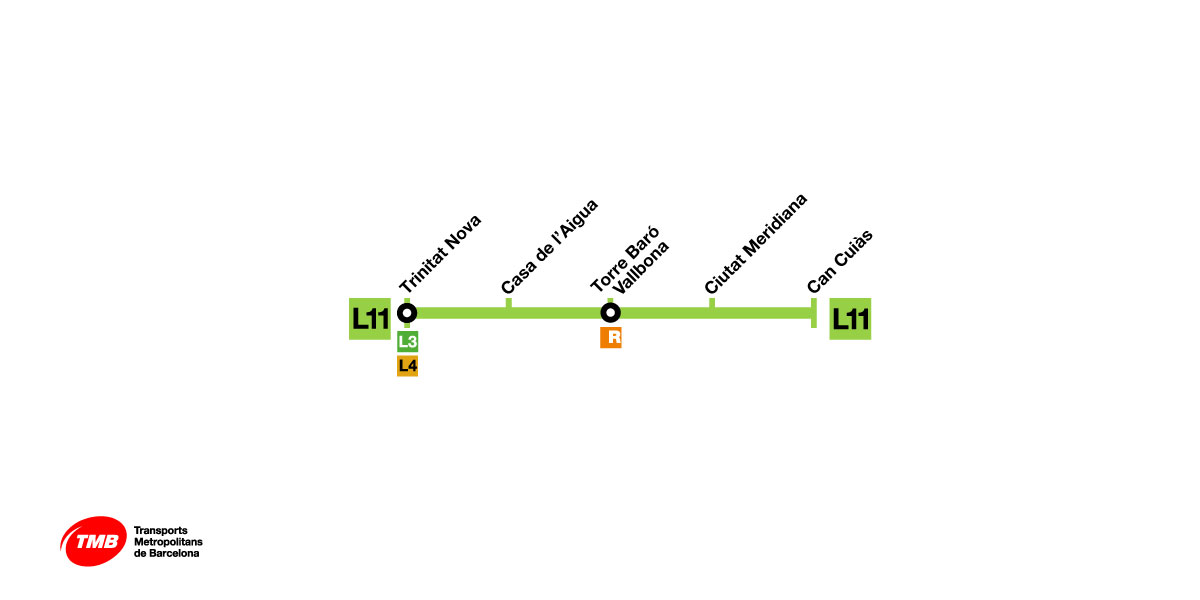 T'oferim el mapa de metro de Barcelona amb totes les línies, estacions, grau d'accessibilitat i enllaços entre línies de la xarxa de metro, FGC, Rodalies de Catalunya i TRAM perquè puguis planificar el teu trajecte. Pots identificar cada línia pel seu número o pel seu color: la L1 (línia 1, vermella), la L2 (línia 2, lila), la L3 (línia 3, verda), la L4 (línia 4, groga), la L5 (línia 5, blava), la L9N (línia 9 Nord, taronja), la L9S (línia 9 Sud, taronja), la L10N (línia 10 Nord, blau clar), La L10S (línia 10 Sud, blau clar) la L11 (línia 11, verd clar) i el FM (Funicular de Montjuïc, verd fosc).