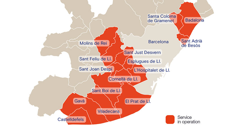 You will find AMBici stations in Castelldefels, Cornellà de Llobregat, Esplugues de Llobregat, Molins de Rei, El Prat de Llobregat, Sant Boi de Llobregat, Sant Joan Despí, Sant Just Desvern, ant Feliu de Llobregat, Viladecans, Gavà, Badalona l'Hospitalet de Llobregat, Sant Adrià del Besòs and l'Hospitalet de Llobregat.