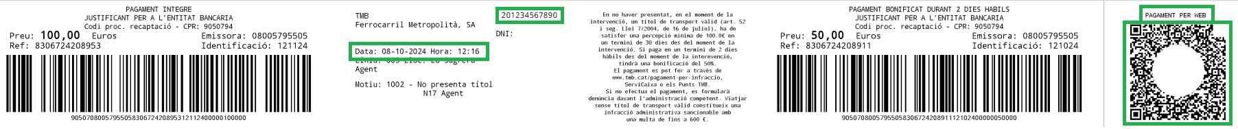 - At Punt TMB customer service centres, in cash or by credit card. If you do not have the inspection slip, you must provide all the relevant details of the inspection: the date, bus number, metro station or any other information requested.