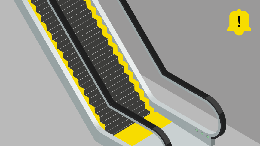 Entrapment incidents on metro escalators often happen accidentally when the yellow step area is invaded. Items such as users’ own footwear or clothing can get caught, but there are also other types of accidents that can be very serious and result from improper use of the facilities. Actions such as using the escalators with dogs not being carried are strictly prohibited. Entering with large objects such as suitcases, baby strollers, or shopping carts that invade the marked yellow area can obstruct the escalator mechanism and increase the risk not only of entrapment but also of falls.