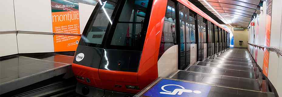 El funicular de Barcelona (línea FM) funciona como un metro y cuenta con dos paradas: Paral·lel, que enlaza con las líneas L2 y L3 del metro, y Parc de Montjuïc, situada en la montaña, que conecta con el teleférico para llegar a lo alto de Montjuïc y acceder al castillo.