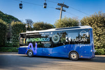 El autobús de la firma turca Karsan es un modelo llamado Autonomous e-ATAK, tiene una capacidad de hasta 52 pasajeros y está equipado con el sistema de automatización FLOWRIDE.IA de la compañía ADASTEC. El vehículo ofrece una autonomía de hasta 300 kilómetros con una sola carga gracias a sus baterías de litio de alta eficiencia. Su diseño permite detectar todos los objetos a su alrededor, interpretar señales de tráfico y controlar el entorno urbano dentro de una ruta predefinida.
